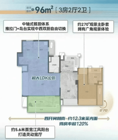 再者,超120%的实用率,成为项目的“杀手锏”。在广州楼市中,大多数楼盘的实用率在80%-90%左右,能达到100%就已经算是优质水平,而越秀江湾潮起突破120%的实用率,无疑是产品力的极致体现。这得益于项目作为新规项目的优势,阳台占比可达20%,让空间利用率大幅提升,相同的建筑面积能获得更开阔的使用空间。对于购房者而言,超高实用率意味着花同样的钱能得到更大的居住空间,无论是刚需改善还是追求阔绰尺度的家庭,都能从中受益。这种产品力的优势,不仅让居住更加舒适,也让项目在同类楼盘中脱颖而出。
